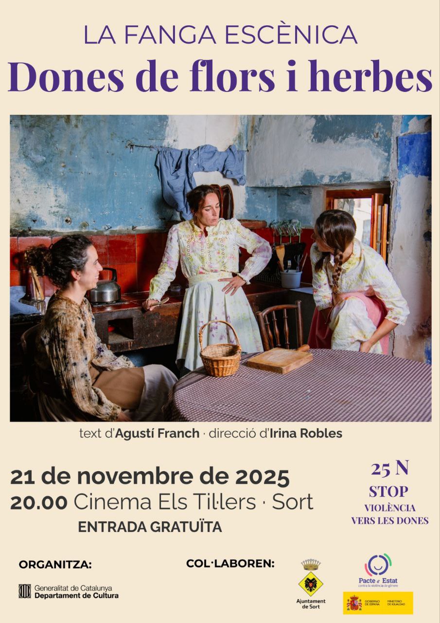 Teatre els Til·lers de Sort. Dones de Flors i herbes, de la Cia. La fanga escènica. Teatre a favor dels drets de les dones en motiu del 25N a Sort.