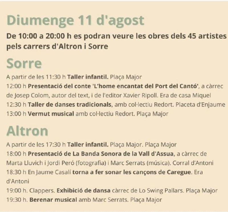 De 10:00 a 20:00 h es podran veure les obres dels 45 artistes pels carrers d'Altron i Sorre