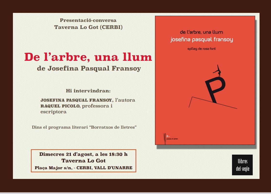 Dimecres 21 d'agost, a les 18:30 h Taverna Lo Got Plaça Major s/n, - CERBI, VALL D'UNARRE