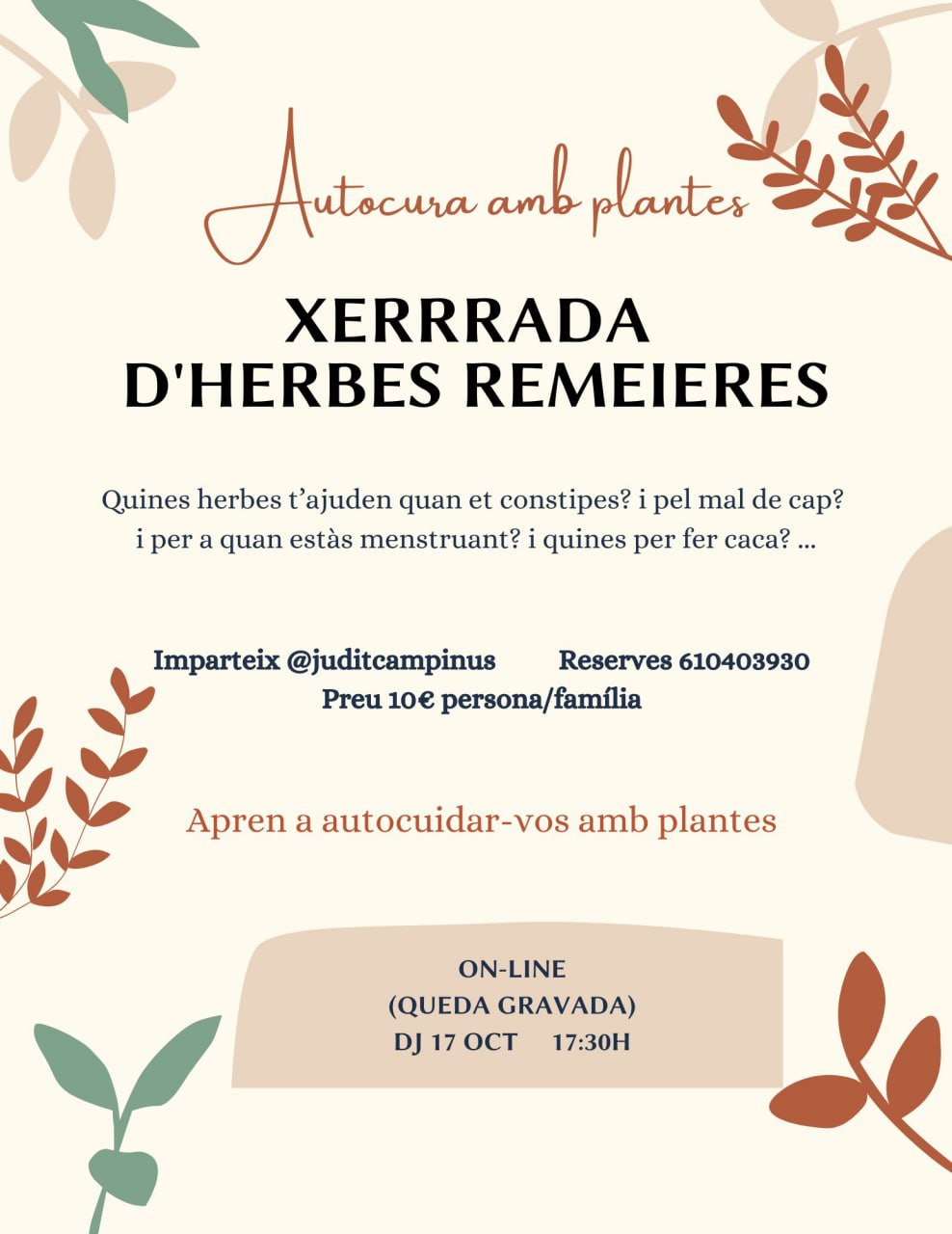 Imparteix @juditcampinus Reserves 610403930 Preu 10€ persona/família