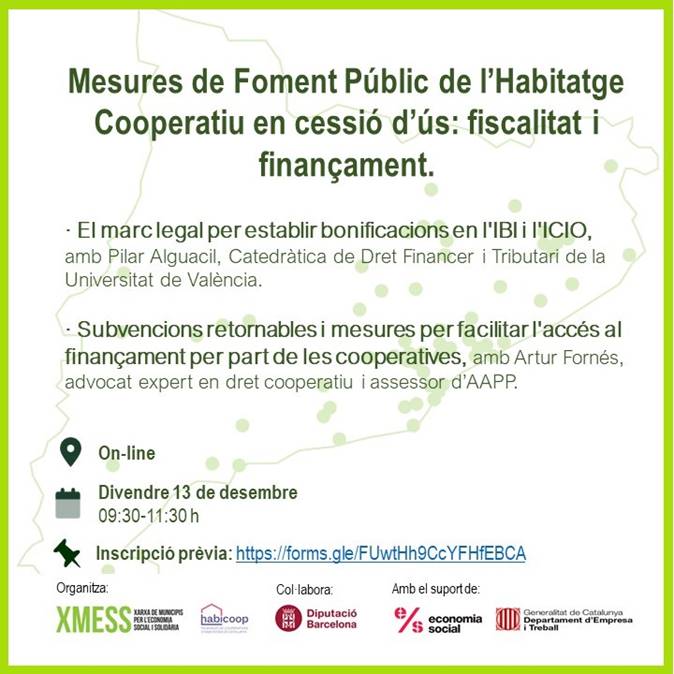 Mesures de Foment Públic de l'Habitatge Cooperatiu en cessió d'ús: fiscalitat i finançament.