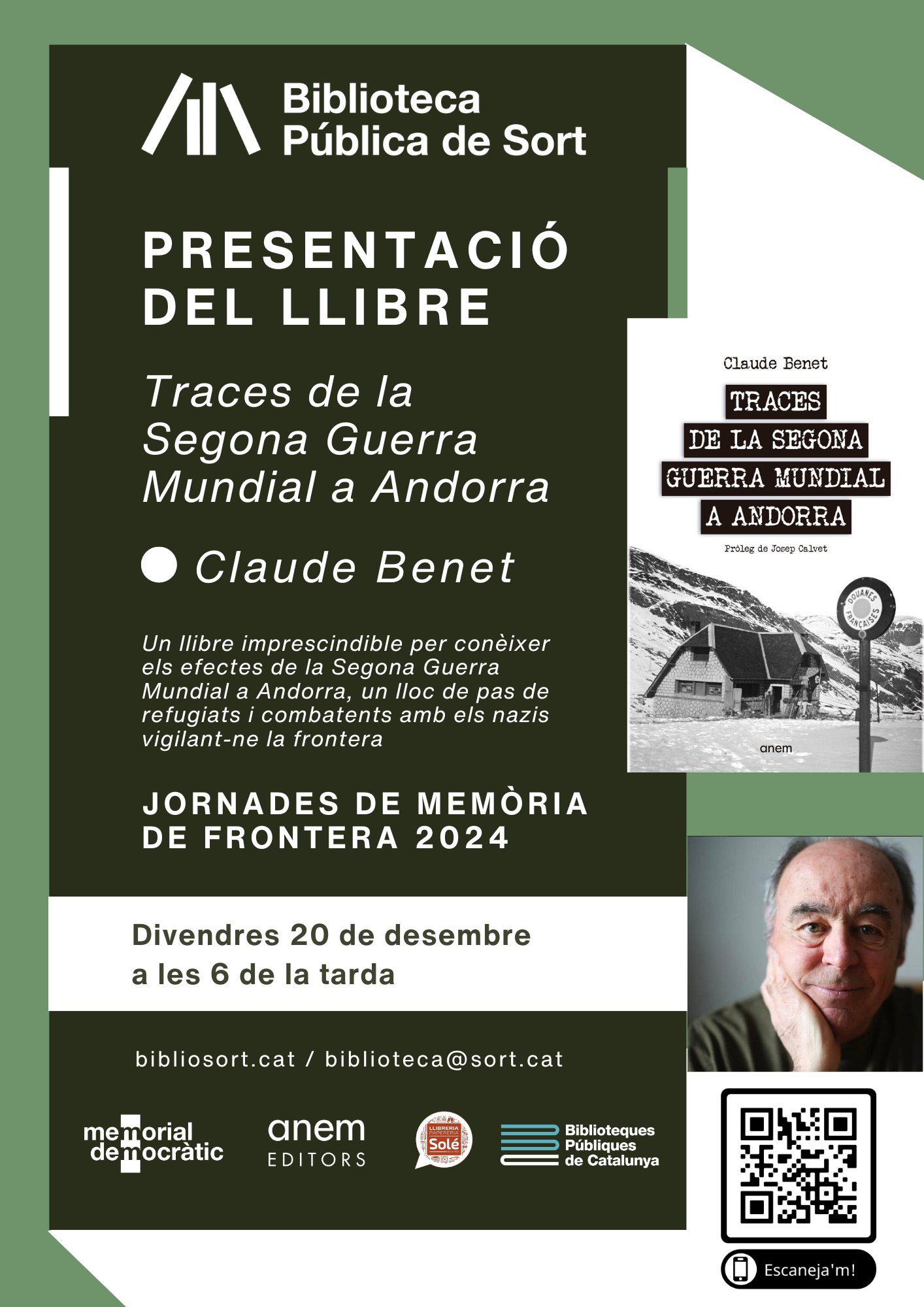 Les Jornades de Memòria de Frontera de la Presó-Museu Camí de la Llibertat continuen amb la presentació del llibre "Traces de la Segona Guerra Mundial a Andorra", de Claude Benet