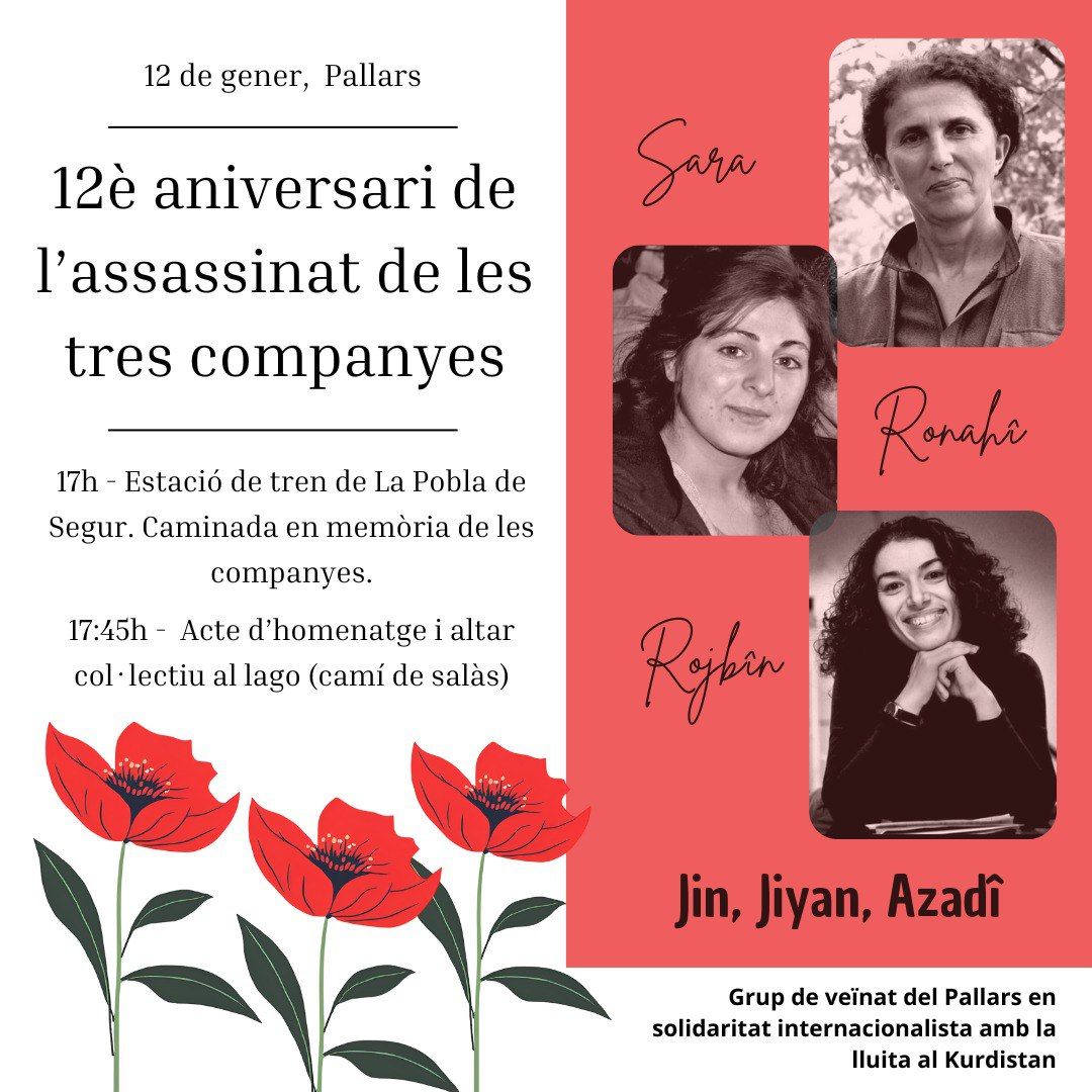 El dia 9 de gener es compleixen 12 anys de l'assassinat de 3 companyes revolucionàries del Moviment de Dones Lliures de Kurdistan.