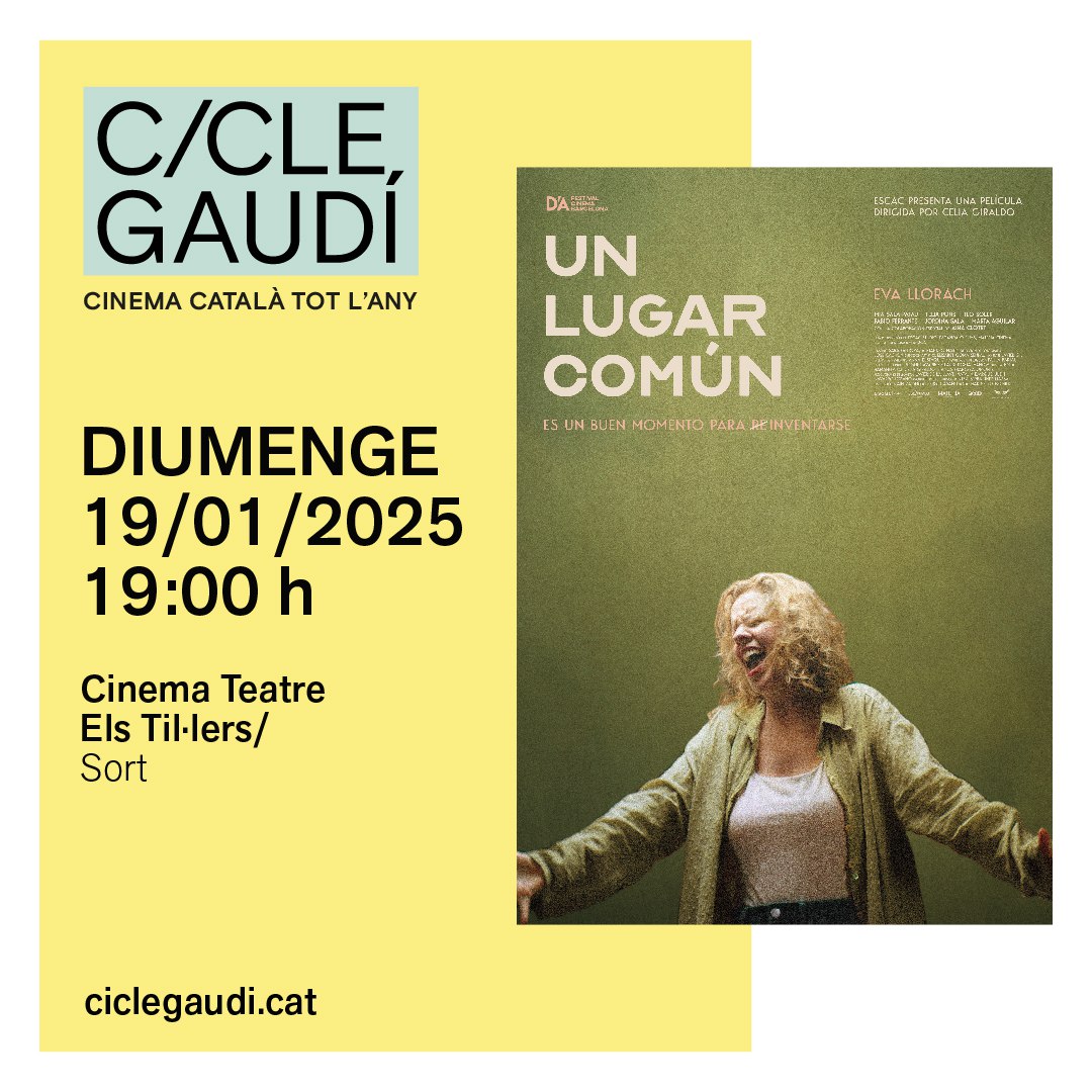 Aquest diumenge 19 de gener, a les 7 de la tarda, torna el #CicleGaudí a Sort amb "Un lugar común", pel·lícula dirigida per Celia Giraldo, una comèdia dramàtica sobre com reinventar-te amb grans noms del nostre cinema com Eva Llorach i Aina Clotet i estones per ballar, no us la perdeu!
