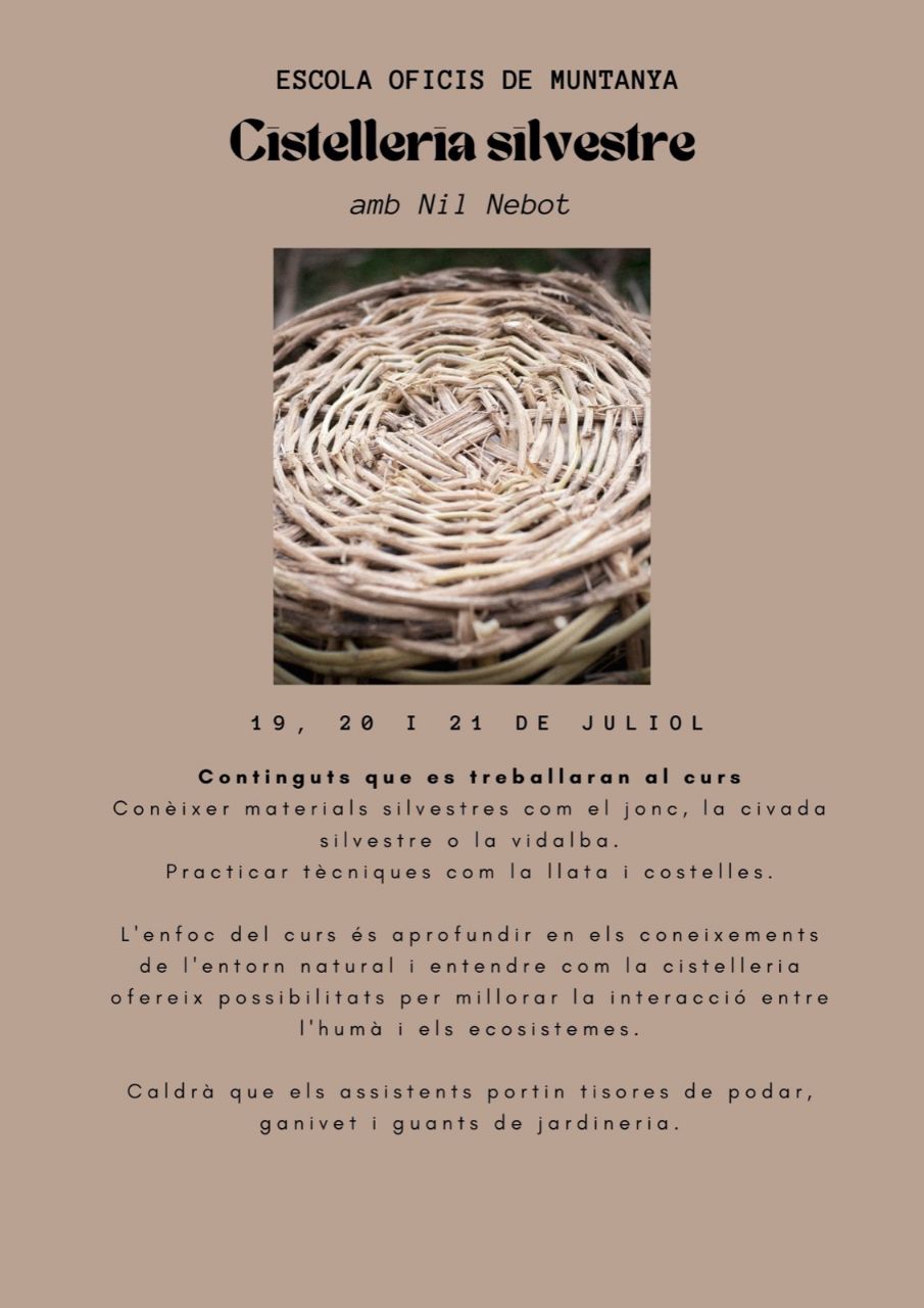 L'enfoc del curs és aprofundir en els coneixements de l'entorn natural i entendre com la cistelleria ofereix possibilitats per millorar la interacció entre l'humà i els ecosistemes.
