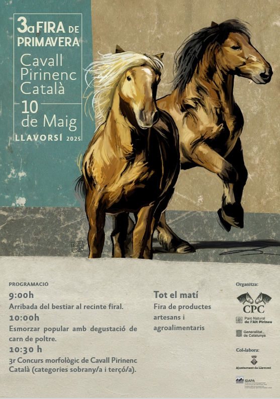 10:30h - 3er Concurs morfològic de Cavall Pirinenc Català (categories sobrany/a i terçó/a). A la mitja part demostració de maneig.