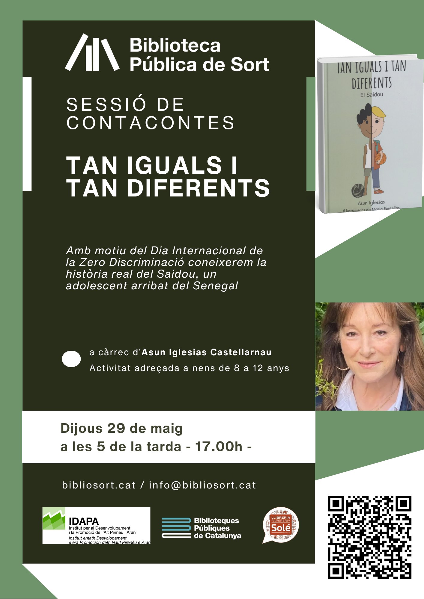 Activitat gratuïta adreçada a nens i nenes de 8-12 anys, més informació a la nostra pàgina web https://bibliosort.cat/esdeveniments/contacontes-tan-iguals-tan-diferents/
