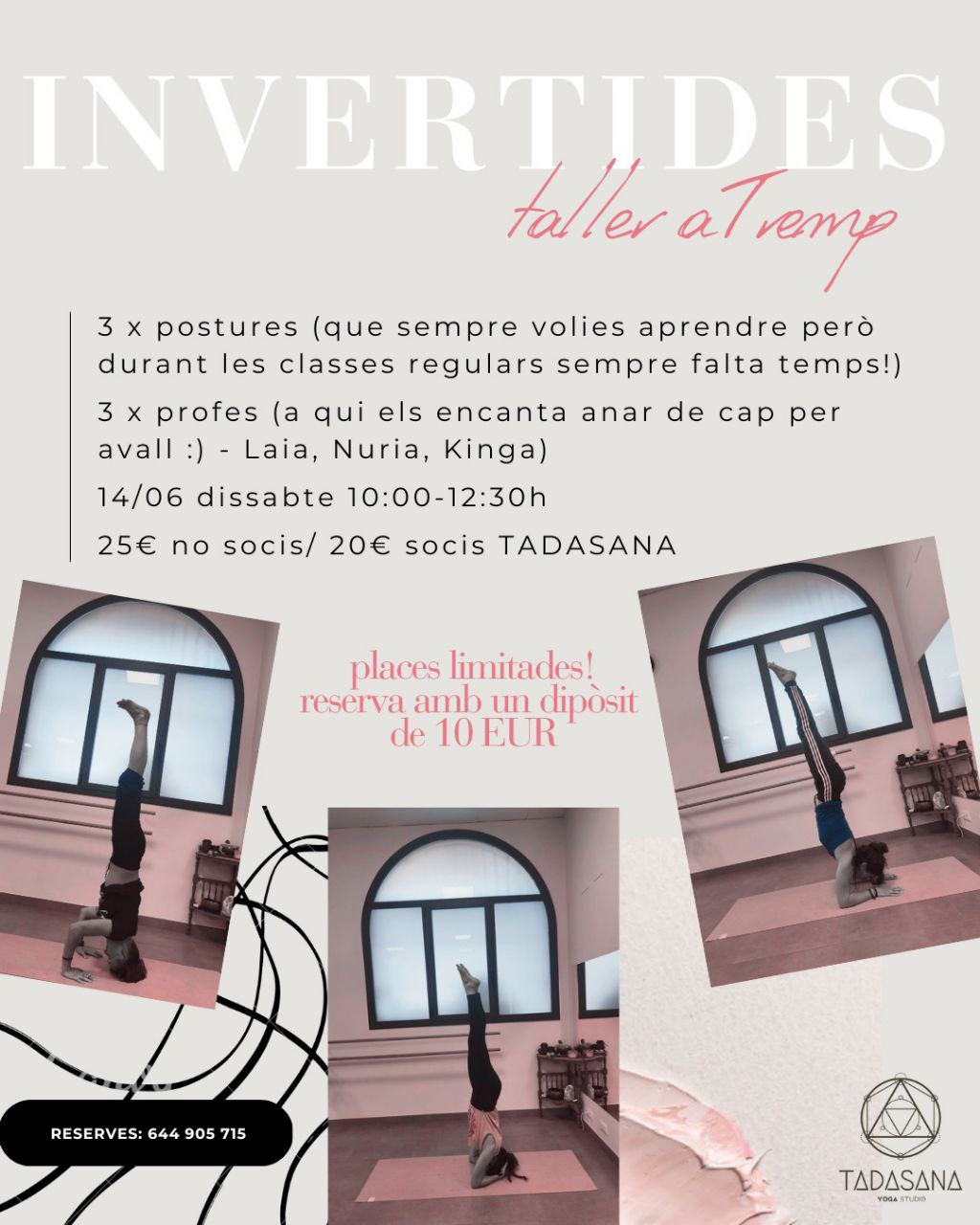 Quines són les nostres postures: Baddha Hasta Sirsasana (parada de cap), Mukta Hasta Sirsasana (parada de cap sobre trípode) i Pincha Mayurasana (parada de cap sobre els braços).