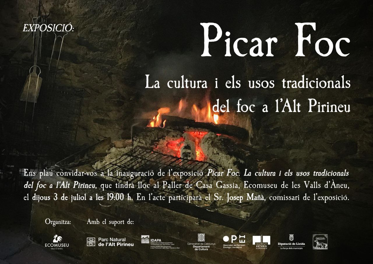 Ens plau convidar-vos a la inauguració de d'exposició Picar Foc. La cultura i els usos tradicionals del foc a l'Alt Pirineu, que tindrà lloc al Paller de Casa Gassia, Ecomuseu de les Valls d'Àneu. En l'acte participarà: el Sr. Josep Maià, comissari de l'exposició.