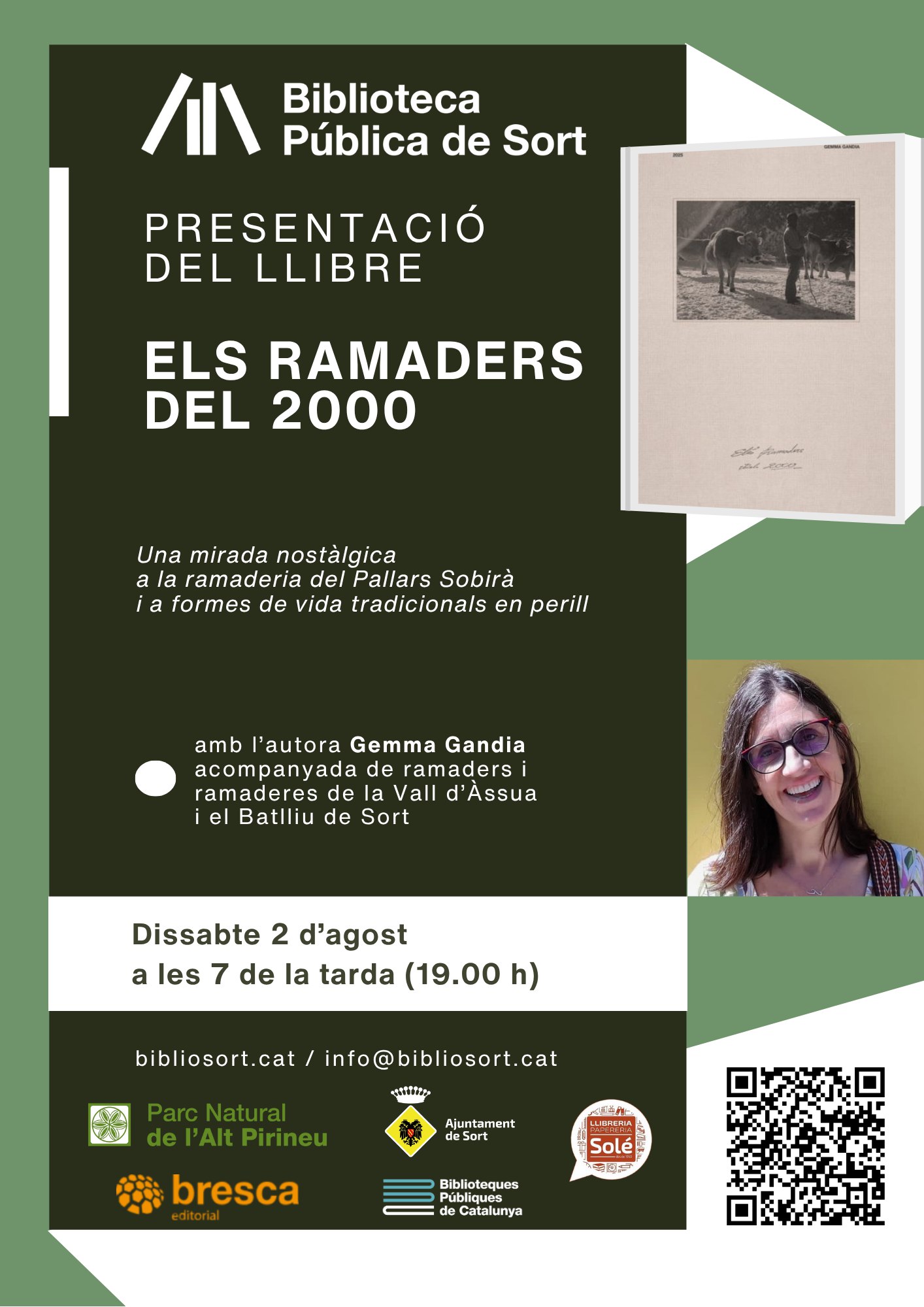 Us convidem a la presentació del llibre "Els ramaders del 2000: memòria visual d'un ofici a les muntanyes del Pallars Sobirà", amb text i fotografies de Gemma Gandia, una publicació del Parc Natural de l'Alt Pirineu i Bresca Editorial, que tindrà lloc aquest dissabte, 2 d'agost, a les 7 de la tarda (19h), a la sala d'actes de la Biblioteca Pública de Sort