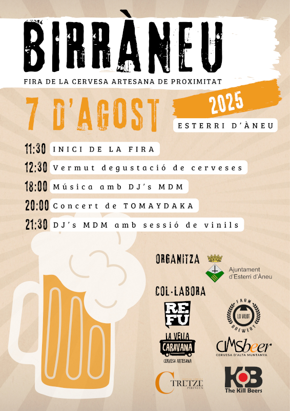 Com ja es tradició, el dia previ a la Festa Major d'Esterri, s'inicia amb la Fira de la Cervesa Artesana de Proximitat BIRRÀNEU!