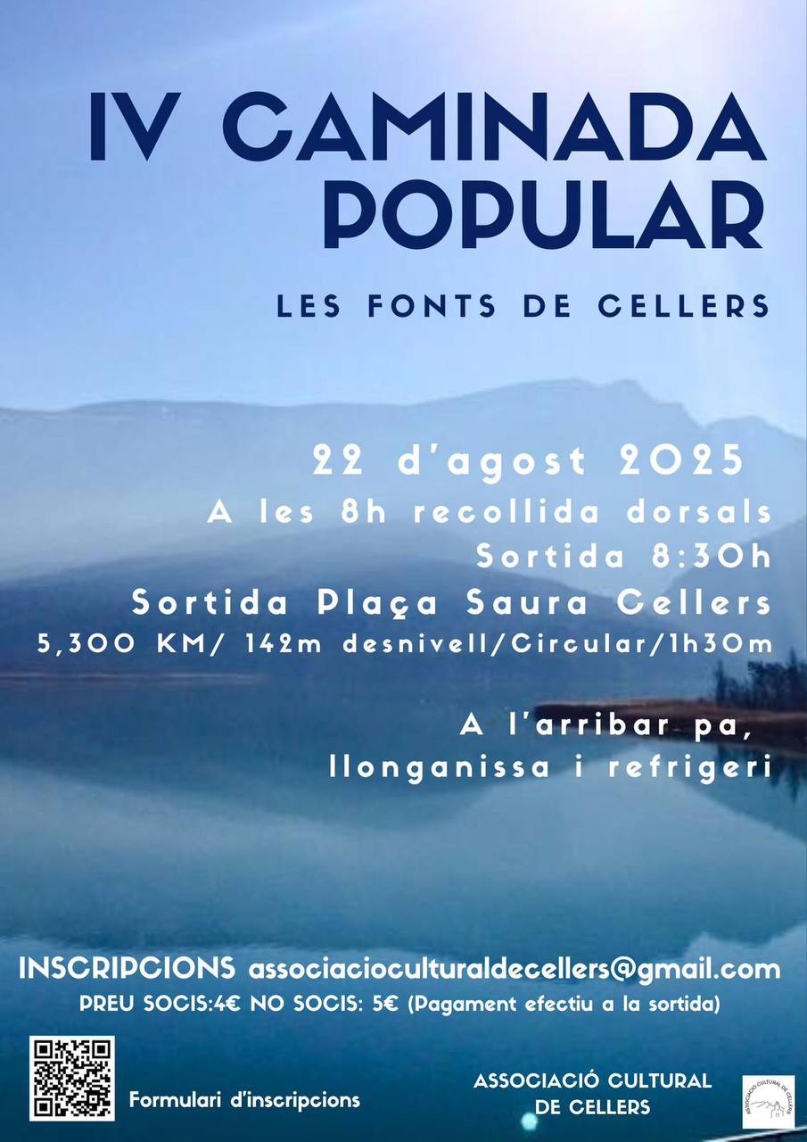 INSCRIPCIONS: associacioculturaldecellers@gmail.com PREU SOCIS: 4€ NO SOCIS: 5€ (Pagament efectiu a la sortida)