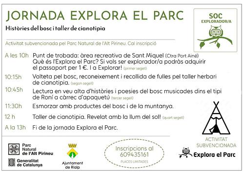 - A les 10h Punt de trobada: àrea recreativa de Sant Miquel (Ctra Port Ainé) Què és l'Explora el Parc? Si vols ser explorador/a podràs adquirir el passaport per 1€. l a Explorar! (primer segell)