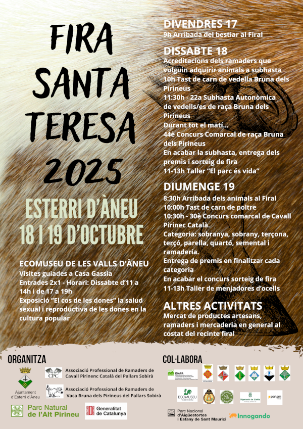 La tradicional FIRA RAMADERA de SANTA TERESA d'Esterri d'Àneu tindrà lloc el proper 18 i 19 d'octubre al recinte firal de la vila.