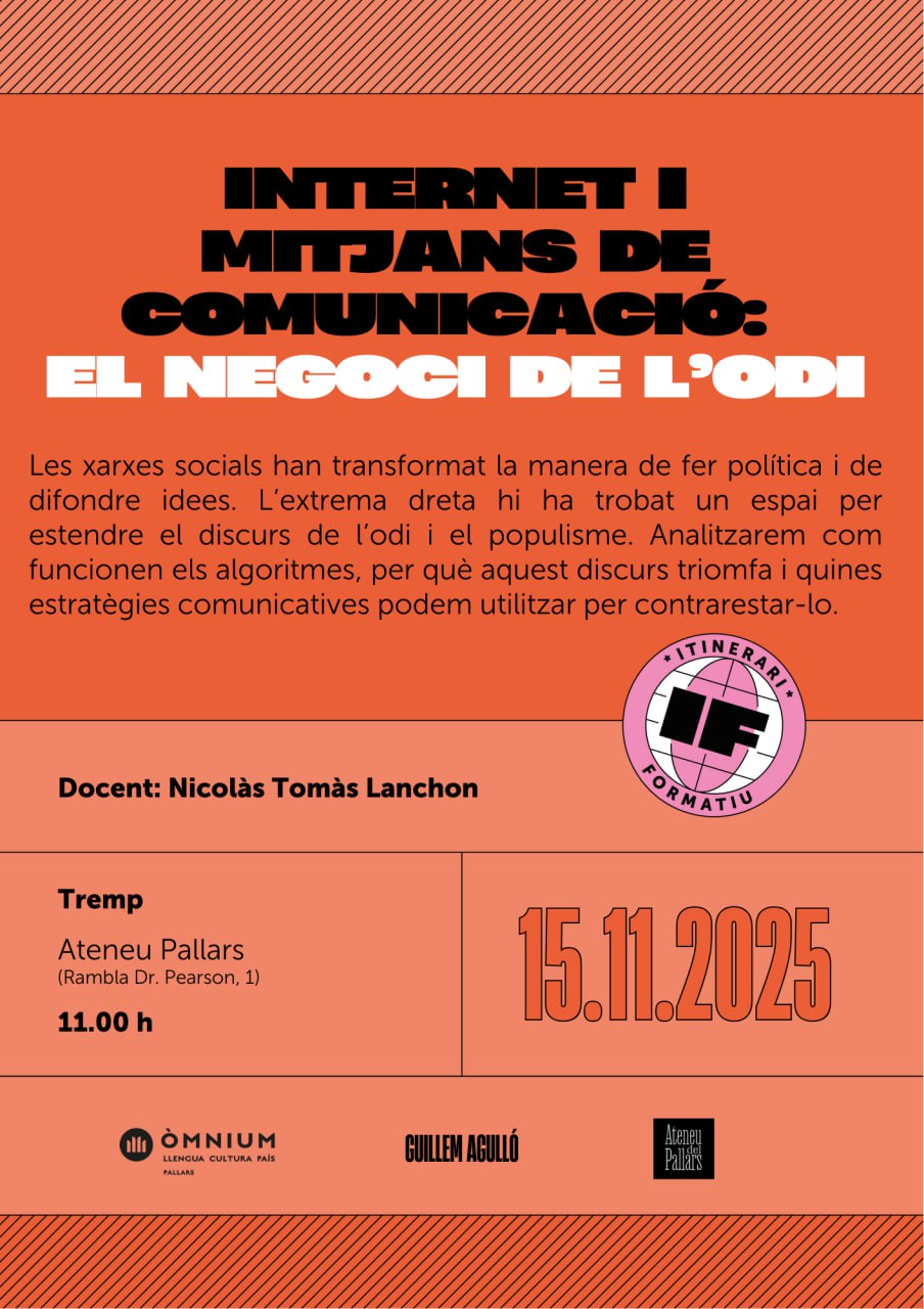 Les xarxes socials han transformat la manera de fer política i de difondre idees. L'extrema dreta hi ha trobat un espai per estendre el discurs de l'odi i el populisme. Analitzarem com funcionen els algoritmes, per què aquest discurs triomfa i quines estratègies comunicatives podem utilitzar per contrarestar-lo.