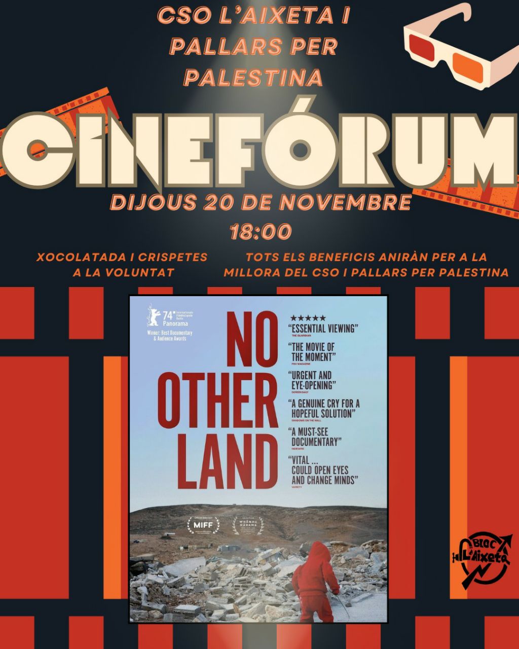 Des del CSO l’Aixeta i Pallars per Palestina us convidem a una tarda de cinema i solidaritat